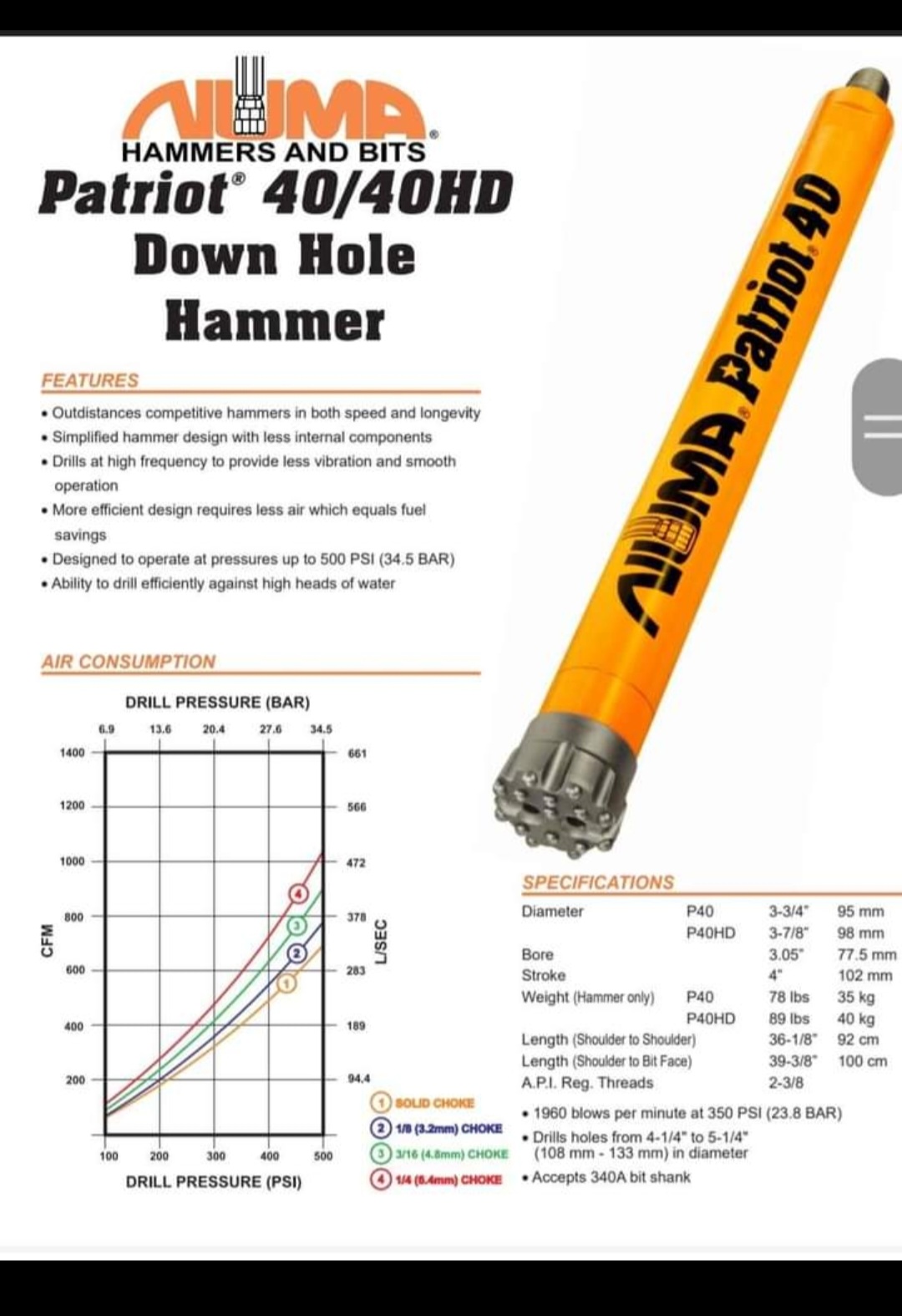 NUMA Patriot HD40 Down Hole Hammer.